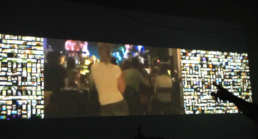 Die Besucher*innen können durch Bewegungen mit der Hand Einfluss auf diese flimmernde Bilderflut nehmen. Sie können einzelne Videos aus der Masse hervorheben und heranzoomen, bis die gesamte Projektionsfläche eingenommen ist. Spielerisch und in Interaktion kann man auf diese Weise in dem Archiv stöbern und in den Kosmos Handyvideo eintauchen.