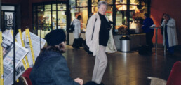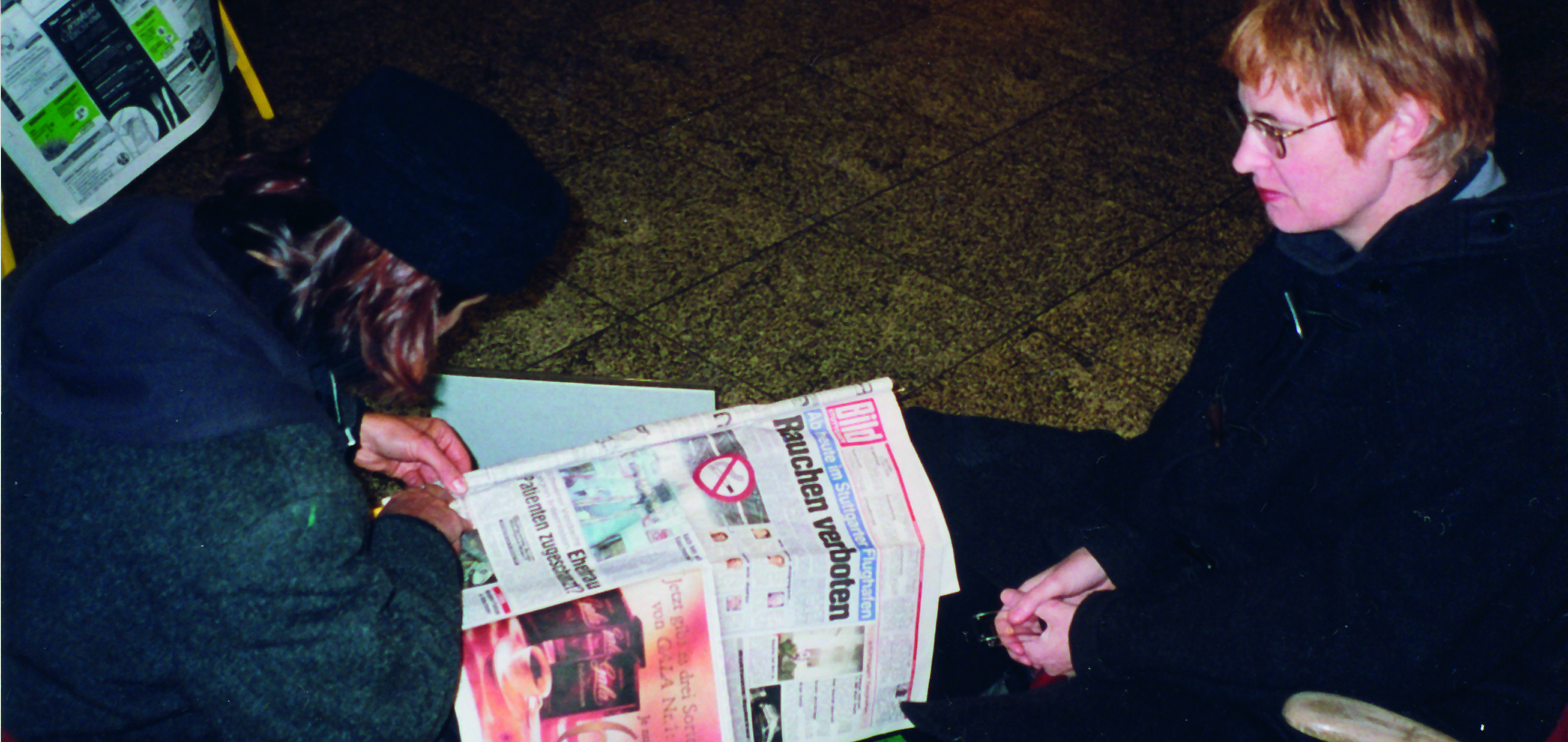 Zehn verschiedene Tageszeitungen der jeweils neuesten Ausgabe stehen täglich zur Auswahl. Die Passant*innen sind irritiert. Sie versuchen mein Angebot in ihr Erfahrungsrepertoire einzuordnen. Dies fällt jedoch schwer, denn kein Logo einer Firma lässt erkennen, wer die Urheber*in dieser Aktion ist.